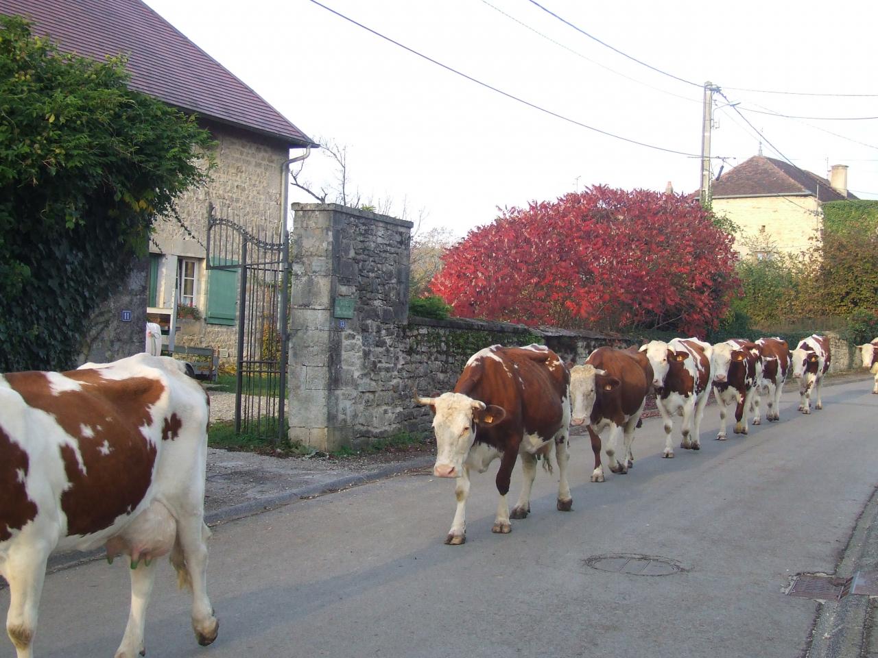 Die Montbéliardes laufen zur Weide